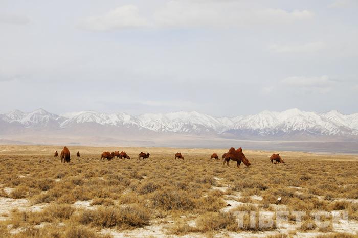 圖為莫河駝場在曠野中自由覓食的駱駝 攝影:王茜