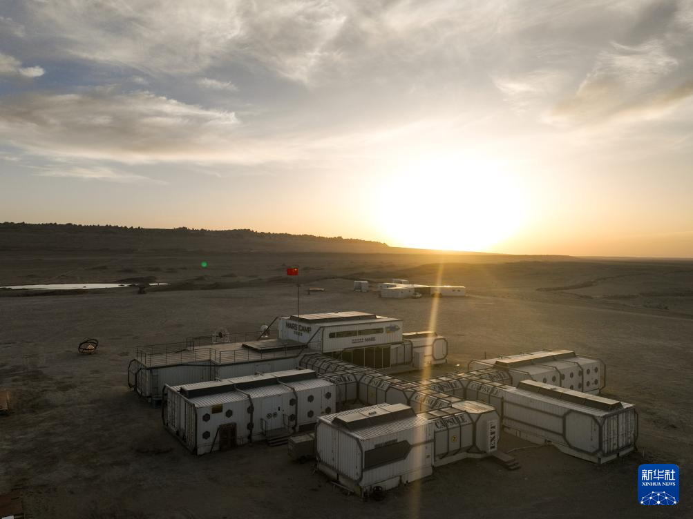 這是4月21日在海西蒙古族藏族自治州茫崖市冷湖鎮(zhèn)拍攝的火星營地(無人機(jī)照片)。新華社記者 張龍 攝
