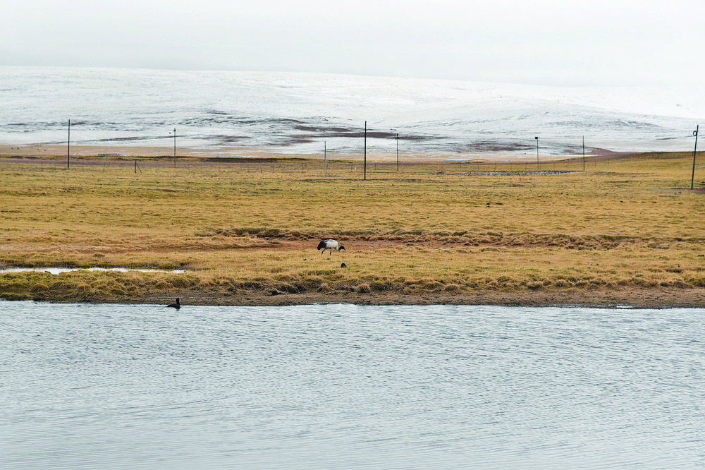 產(chǎn)完蛋的黑頸鶴出去覓食。程宦寧 攝