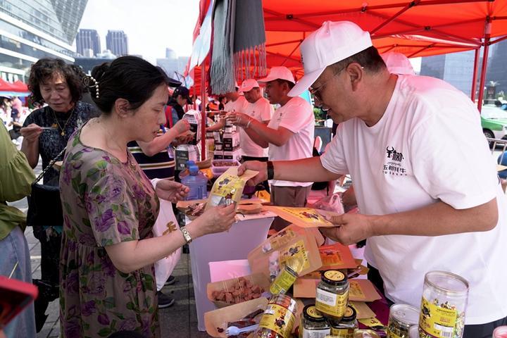 推介會上的土特產(chǎn)吸引了眾多市民的目光。新華網(wǎng) 吳曉 攝