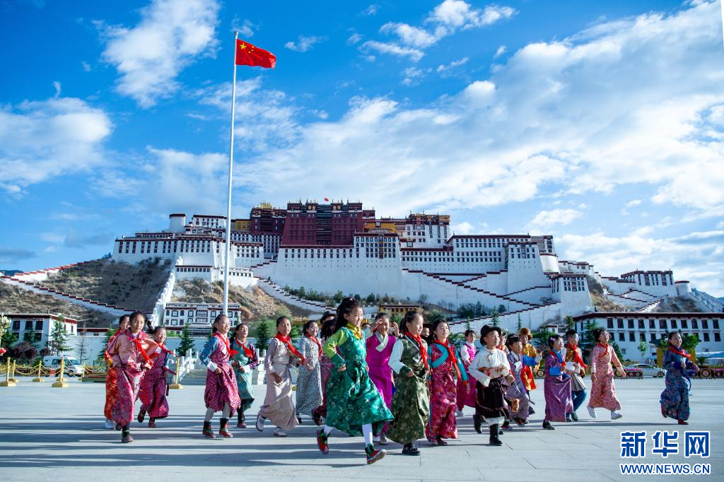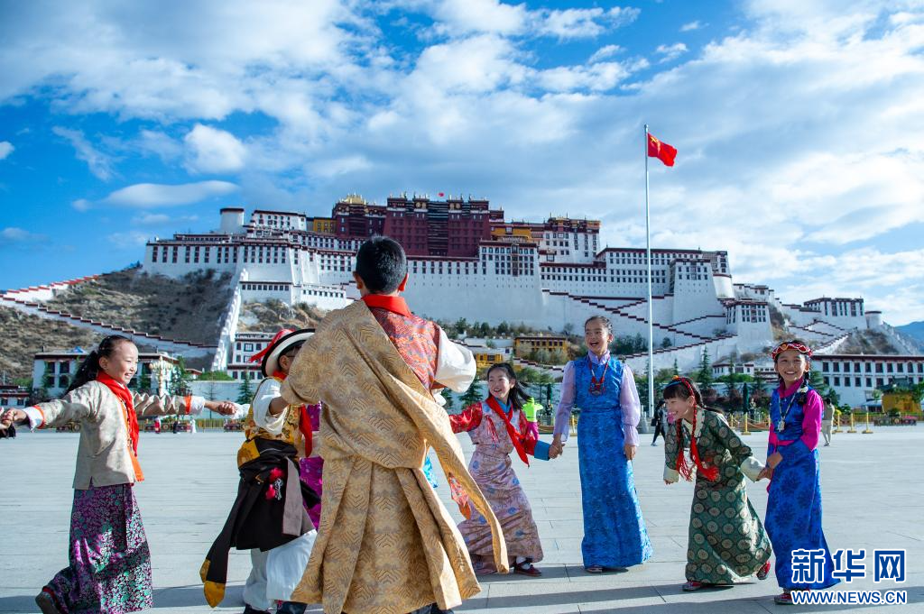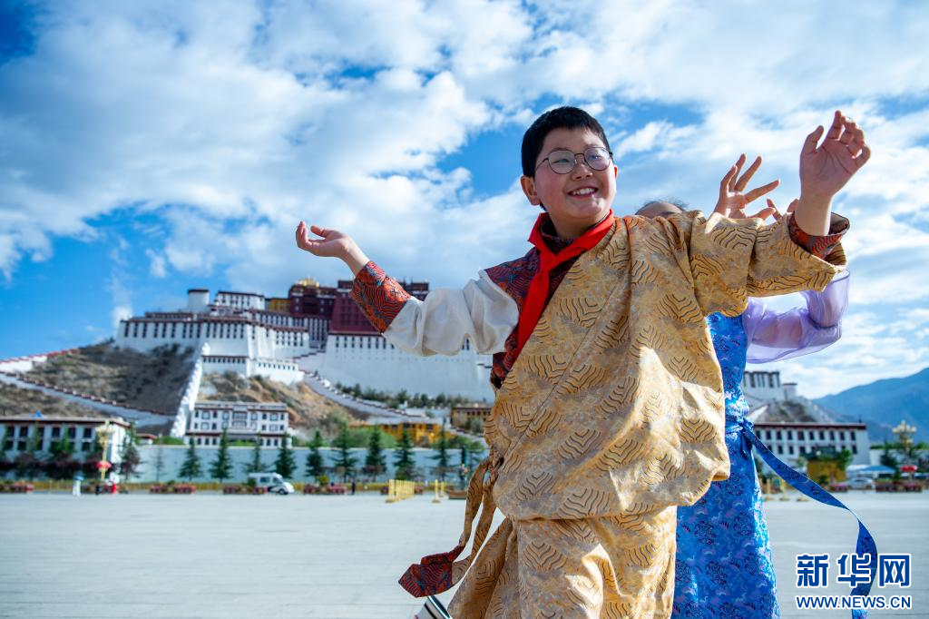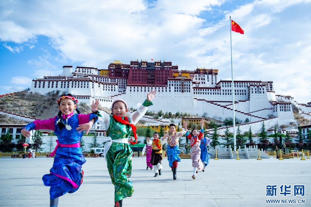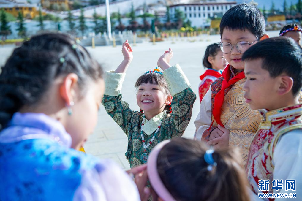 6月1日,小朋友們?cè)诓歼_(dá)拉宮廣場(chǎng)歡慶“六一”國際兒童節(jié)。新華網(wǎng) 旦增努布 攝
