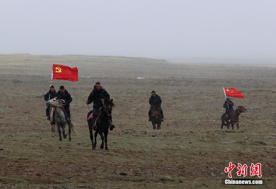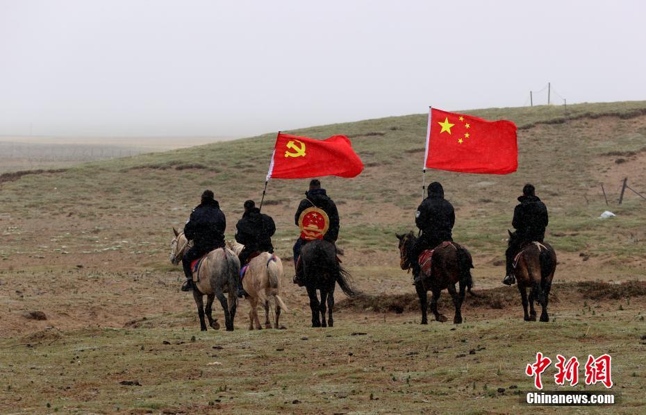 6月3日,在青海省果洛藏族自治州瑪多縣花石峽鎮(zhèn),瑪多縣人民法院“馬背法庭”的法官頂風(fēng)前往牧民家中進(jìn)行訴前調(diào)解。薛蒂 攝