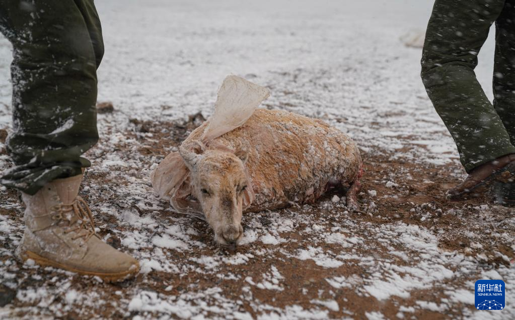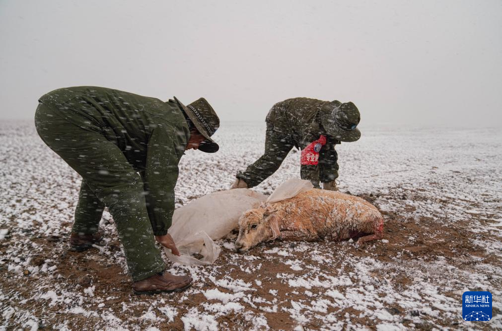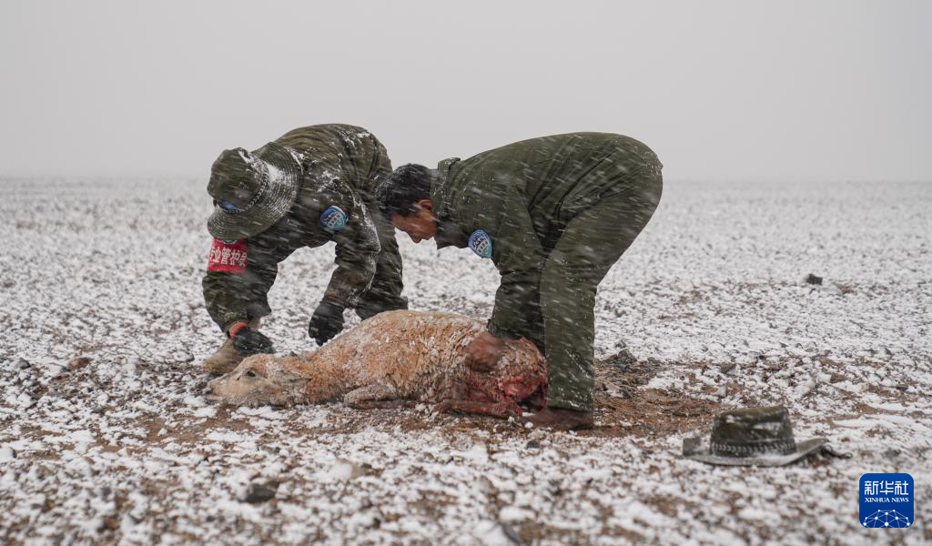 羌塘國(guó)家級(jí)自然保護(hù)區(qū)的野保員在救治受傷的母藏羚羊(6月14日攝)。新華社發(fā)(旦增攝)