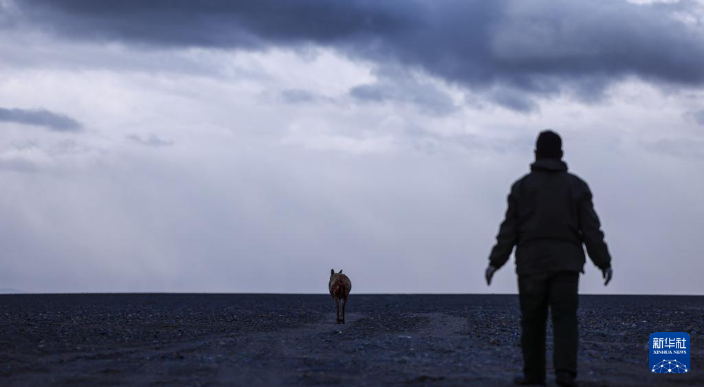 羌塘國(guó)家級(jí)自然保護(hù)區(qū)的野保員把救治后的母藏羚羊放回野外(6月14日攝)。新華社發(fā)(旦增攝)