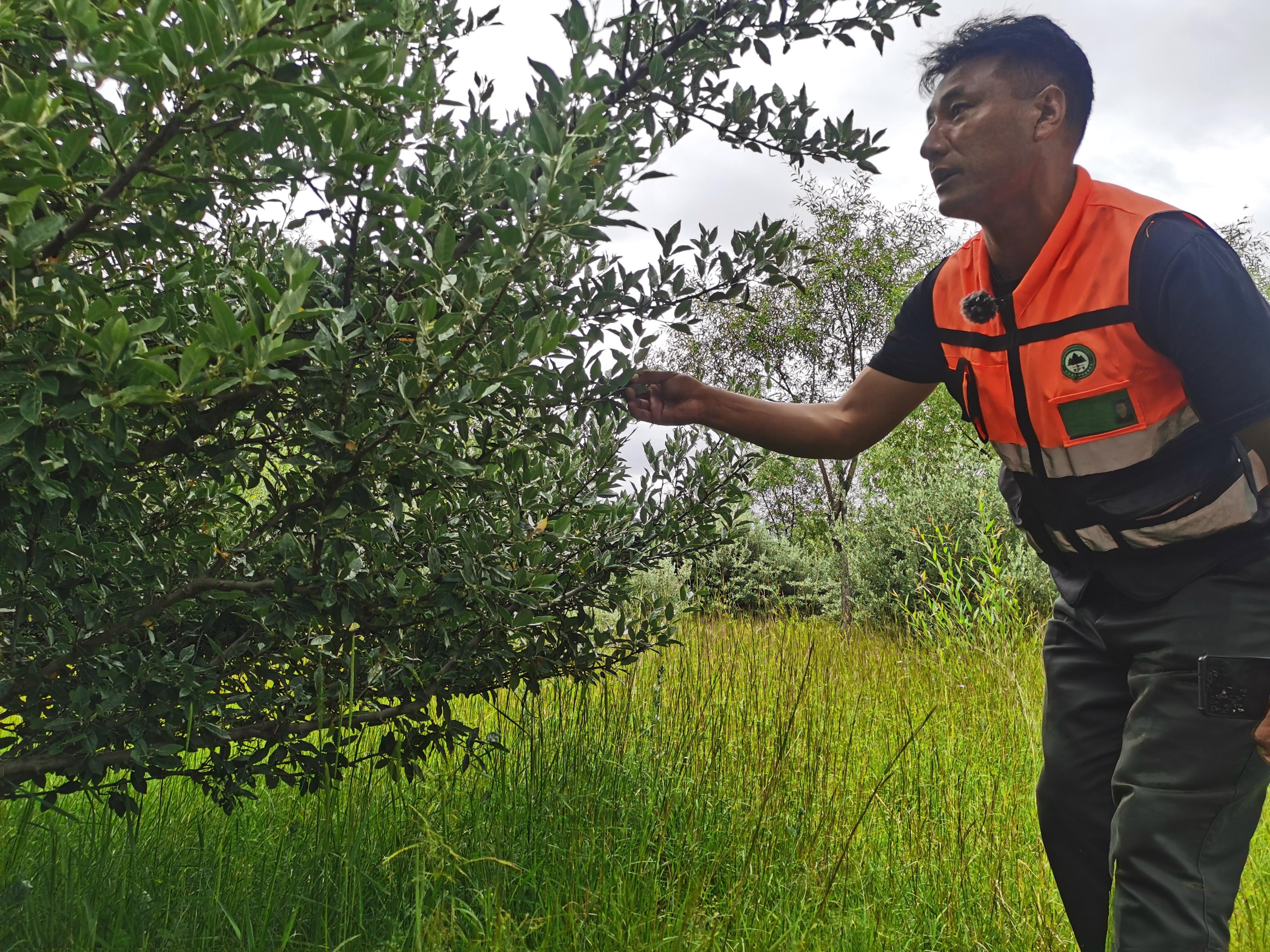 濕地管護(hù)員旺扎查看樹木生長情況 中國經(jīng)濟(jì)網(wǎng)記者魏金金/攝