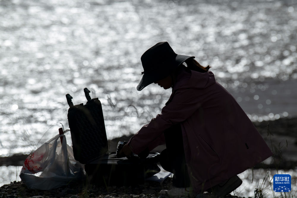 7月23日,長江科學院河流研究所的劉玉嬌(中)在聶洽曲收納采集的樣品。新華社 杜笑微 攝