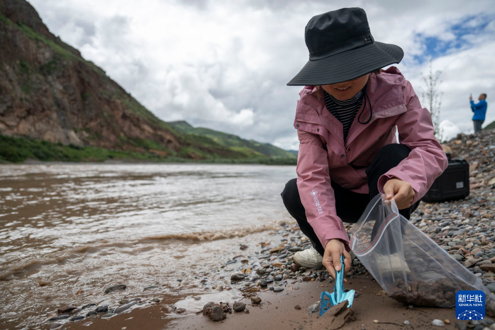 7月21日,長江科學院河流研究所的劉玉嬌在囊謙香達河段采集樣品。新華社記者 伍志尊 攝