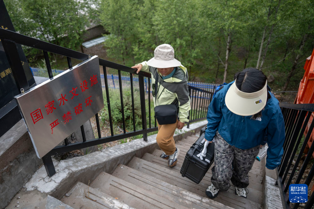 7月21日,長江科學院水資源綜合管理研究所的程淑婕(左)在扎曲雜多段測量現(xiàn)場氣象條件。新華社記者 伍志尊 攝