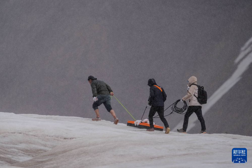 7月25日,在冬克瑪?shù)妆?,科考?duì)員準(zhǔn)備攀爬冰川。新華社發(fā)(杜笑微 攝)