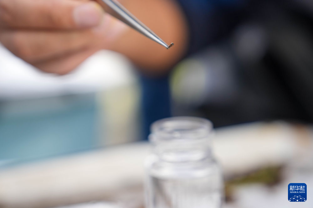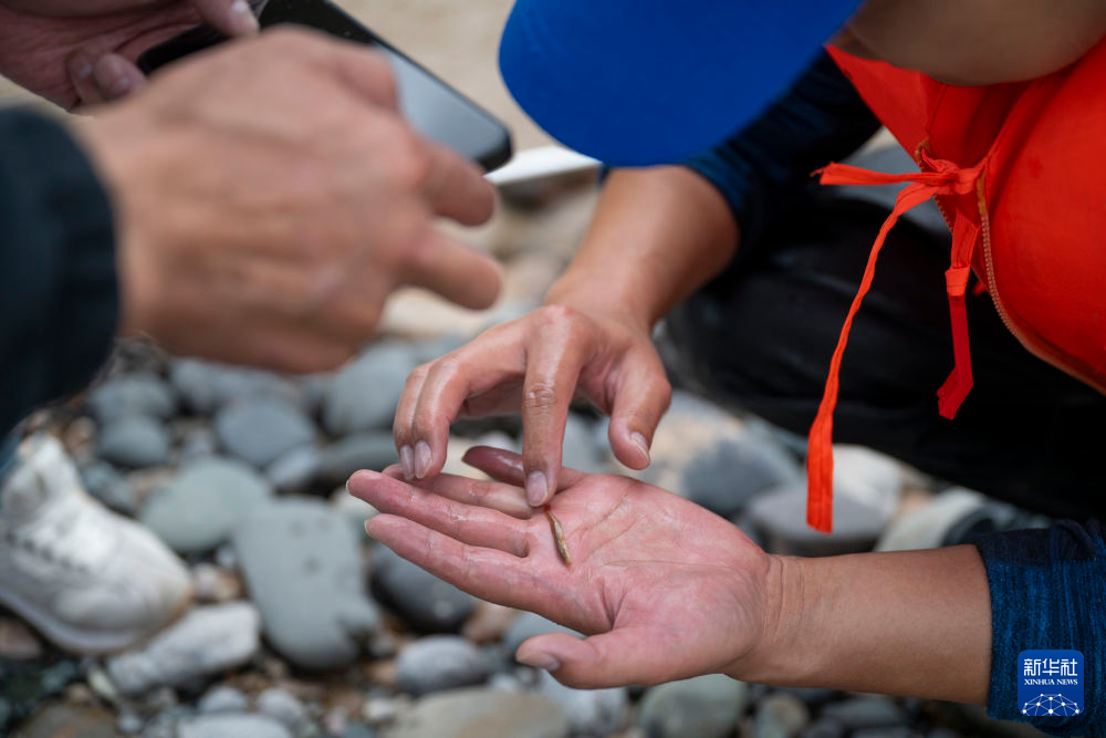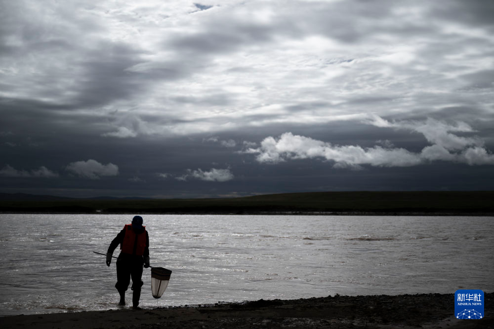 7月21日,在直門達(dá)水文站,科考隊(duì)員開展現(xiàn)場魚類監(jiān)測。新華社記者 陳杰 攝