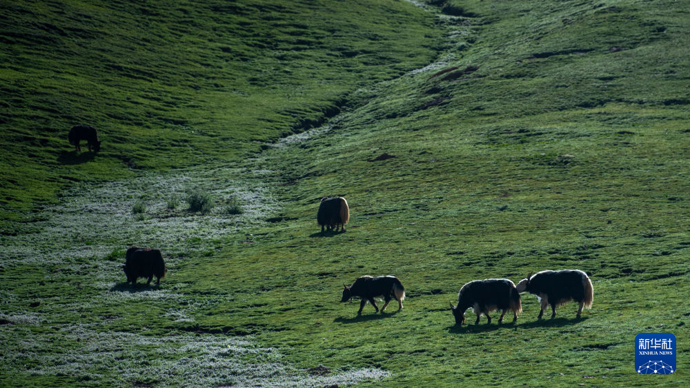 7月23日在江源地區(qū)拍攝的牦牛。新華社發(fā)(潘彬彬攝)