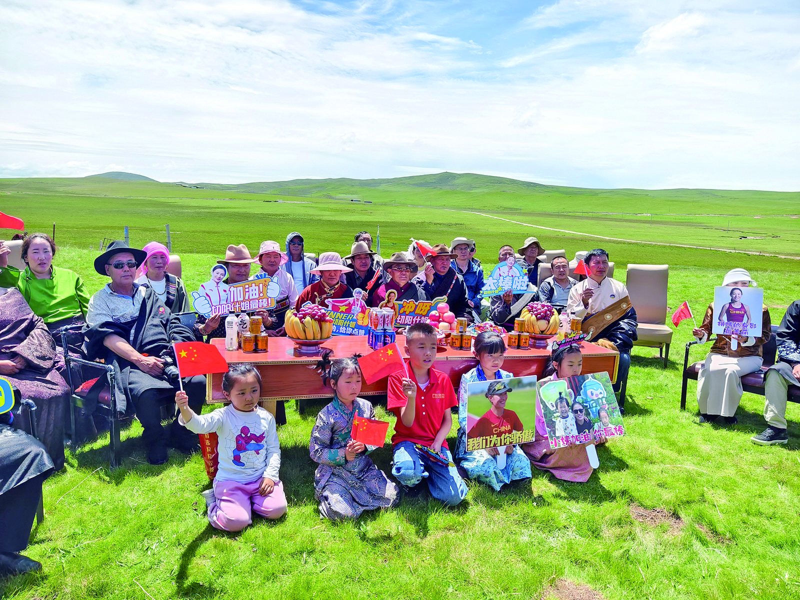人們因為同一個心愿相聚在這里,從這里走出去的藏族女孩兒切陽什姐第四次踏上了奧運征程。在切陽什姐家旁邊的草地上,海北州廣播電視臺為了讓大家更好地觀看直播,提前搭起遮陽棚,架起了100英寸的電視機。