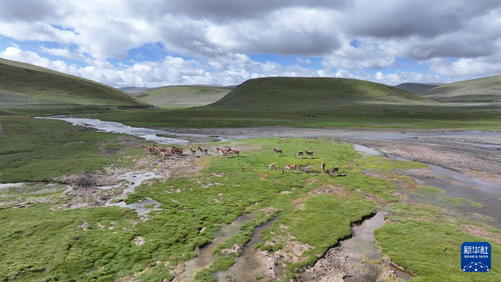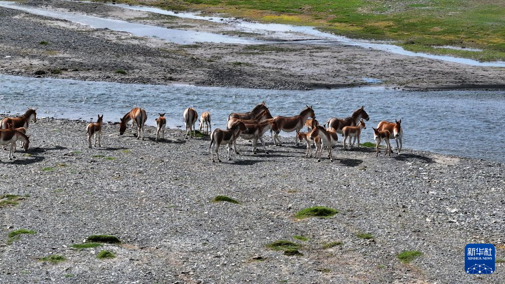 8月9日在青海省玉樹藏族自治州曲麻萊縣境內(nèi)拍攝的藏野驢(無人機(jī)照片)。新華社 昂江 攝