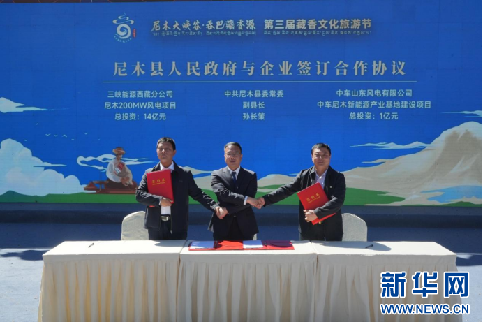 開幕式上,尼木縣委常委、副縣長孫長策與中國三峽新能源集團股份有限公司西藏分公司、中車山東風電有限公司、拉薩明陽新能源有限公司和華電新能源有限公司的代表完成簽約儀式,達成互利共贏的合作關系。 ??