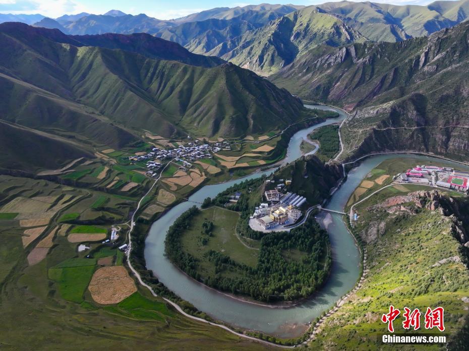 8月21日,航拍靜謐蜿蜒的瀾滄江東源孜曲。(無人機照片)中新社記者 馬銘言 攝