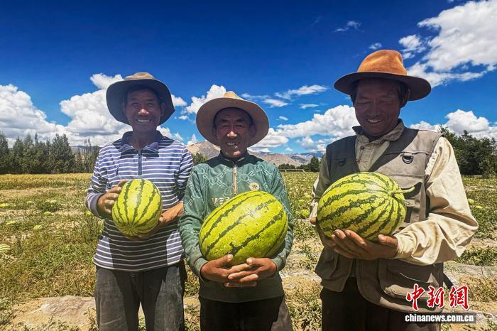 圖為9月6日,西藏日喀則桑珠孜區(qū)年木鄉(xiāng)羅林村露地種植的西瓜。(日喀則市融媒體中心供圖)