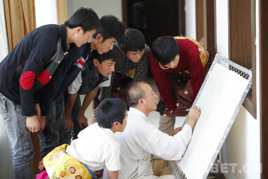 圖為娘本教學生畫唐卡