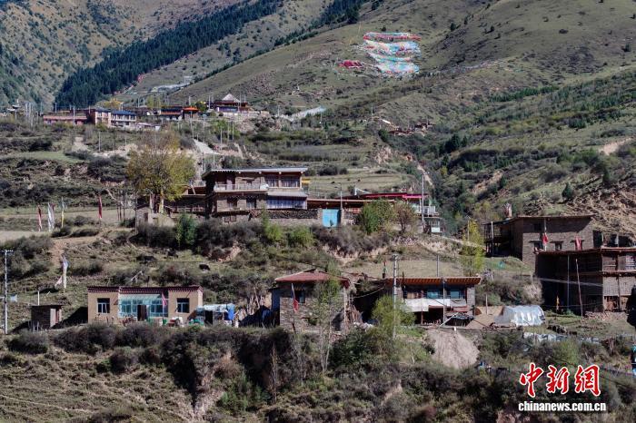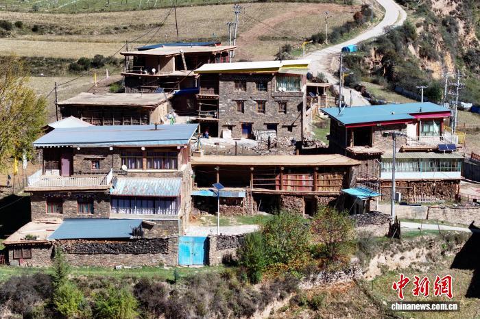 10月16日,航拍青海省果洛藏族自治州班瑪縣境內(nèi)的藏式碉樓群落。(無人機(jī)照片)中新社記者 馬銘言 攝