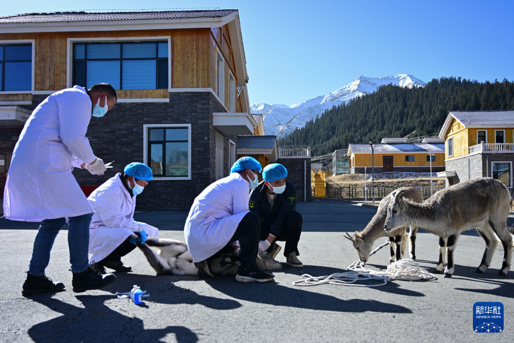 11月10日,在救護繁育站,工作人員為巖羊打疫苗。新華社記者 齊芷玥 攝