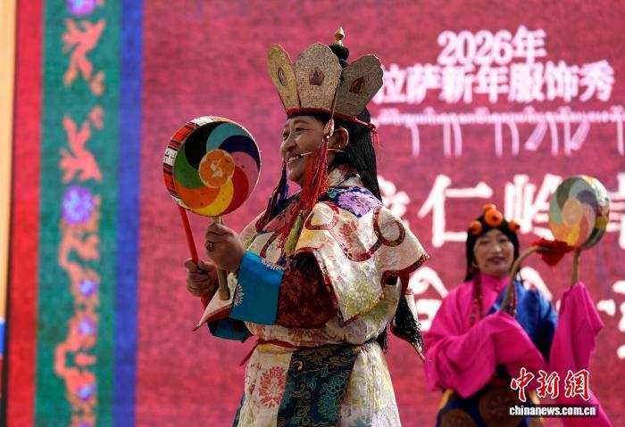 1月2日,“新歲風(fēng)華,衣彩拉薩”2026年拉薩新年服飾秀子活動(dòng)在布達(dá)拉宮腳下的宗角祿康公園舉行。活動(dòng)分為拉薩非物質(zhì)文化遺產(chǎn)代表性項(xiàng)目演藝服飾秀與農(nóng)牧民婦女“村T”秀兩部分,通過(guò)演藝服飾與日常生活勞動(dòng)服飾及場(chǎng)景的展示,生動(dòng)呈現(xiàn)拉薩獨(dú)特的地域文化與民族風(fēng)情。圖為拉薩非物質(zhì)文化遺產(chǎn)代表性項(xiàng)目演藝服飾秀現(xiàn)場(chǎng)。中新社記者 李林 攝