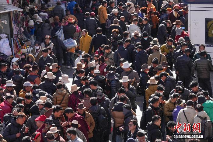 1月27日,藏歷新年將至,拉薩街頭年味漸濃。城區(qū)街巷燈籠高掛,市民忙著采購酥油花、香布、切瑪盒、吉祥羊頭、藏文春聯(lián)等特色年貨,各式新年好物琳瑯滿目,處處洋溢著喜慶祥和的節(jié)日氛圍,人們以傳統(tǒng)方式迎接新年到來。圖為拉薩沖賽康市場前來選購年貨的民眾絡(luò)繹不絕。貢確 攝