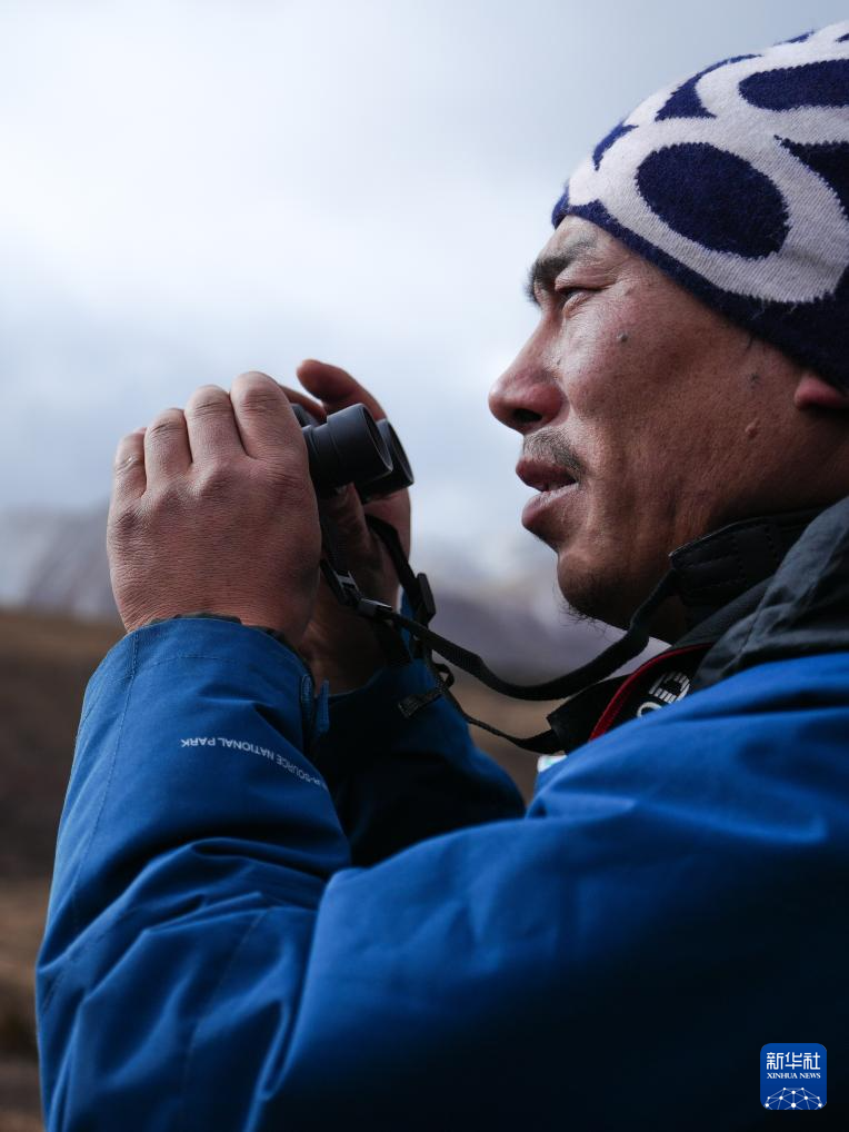 1月29日,在青海省玉樹藏族自治州雜多縣昂賽鄉(xiāng),次丁在巡護(hù)中拍照。新華社記者 齊芷玥 攝