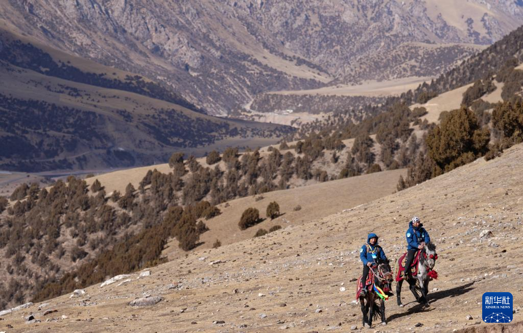 1月29日,次?。ㄗ螅┖透卦谇嗪J∮駱洳刈遄灾沃蓦s多縣昂賽鄉(xiāng)巡護(hù)。新華社記者 齊芷玥 攝