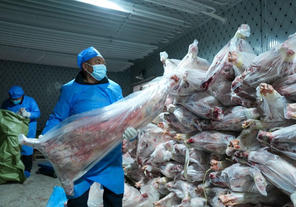 在山下,現(xiàn)代化畜牧工廠里,村民們有條不紊地將鮮嫩的牛羊肉包裝、裝箱,這些帶著唐古拉山氣息的美味,通過物流網(wǎng)絡(luò)發(fā)往全國各地。