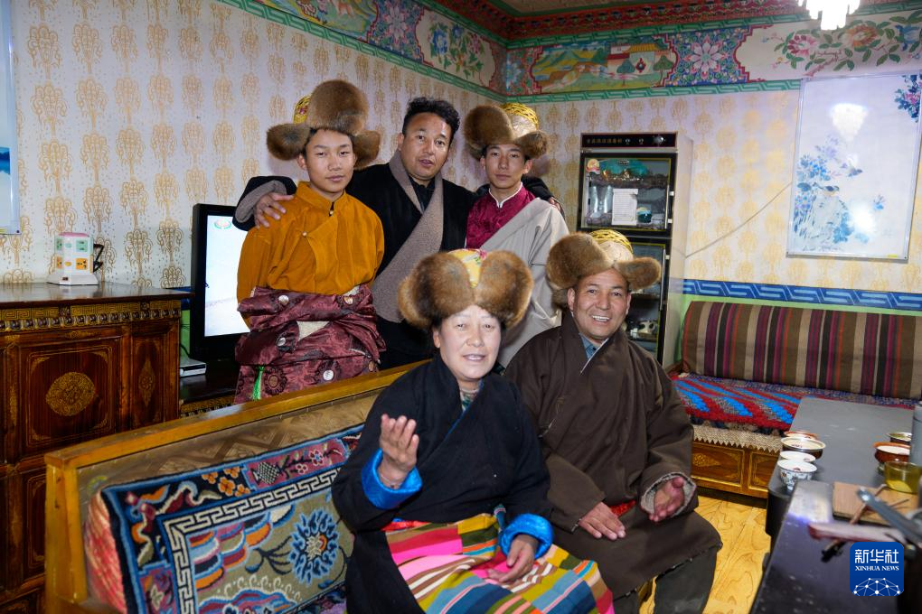 2月16日,在拉薩堆龍德慶區(qū)東嘎街道桑木社區(qū),群群的兒子羅桑土旦(后排中)與家人合影。新華社記者 丁增尼達 攝