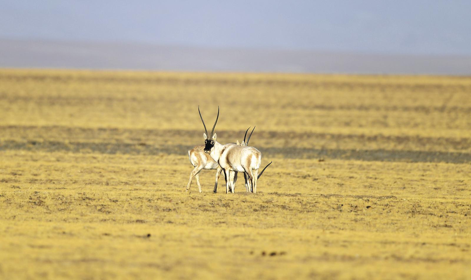 觀察遠(yuǎn)方的藏羚羊。