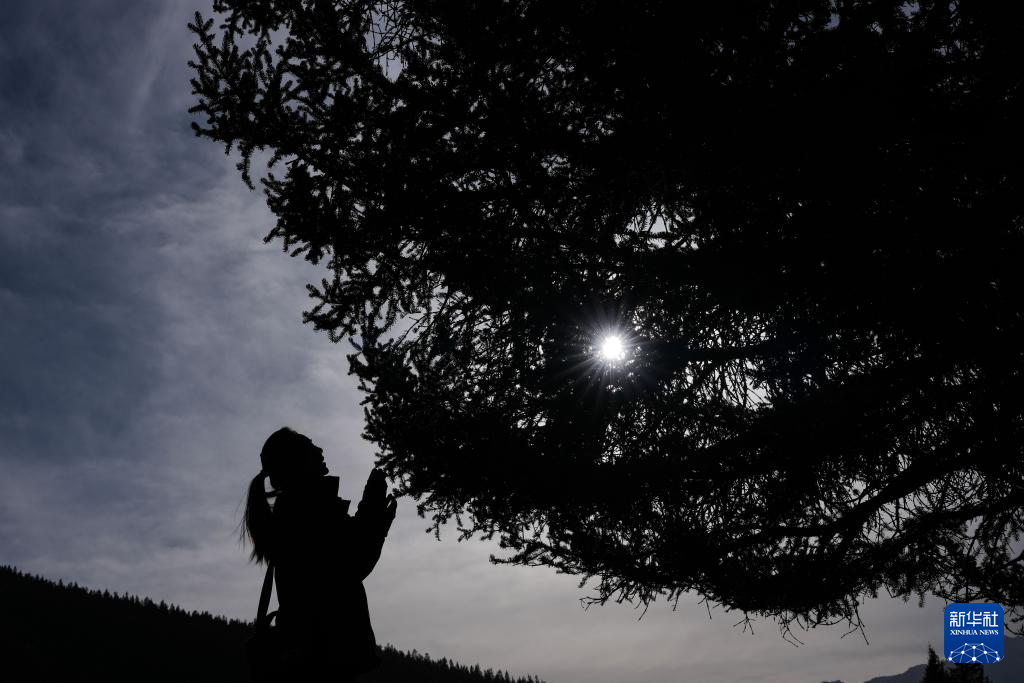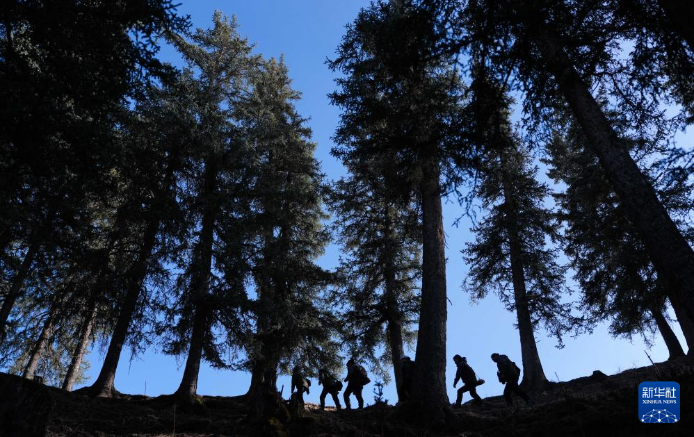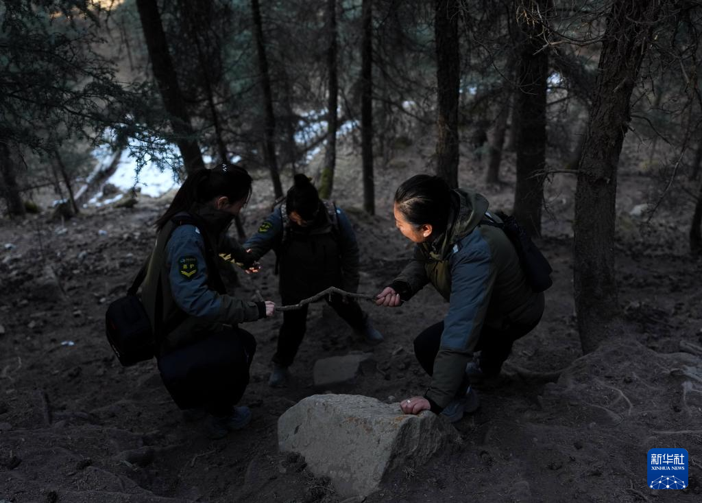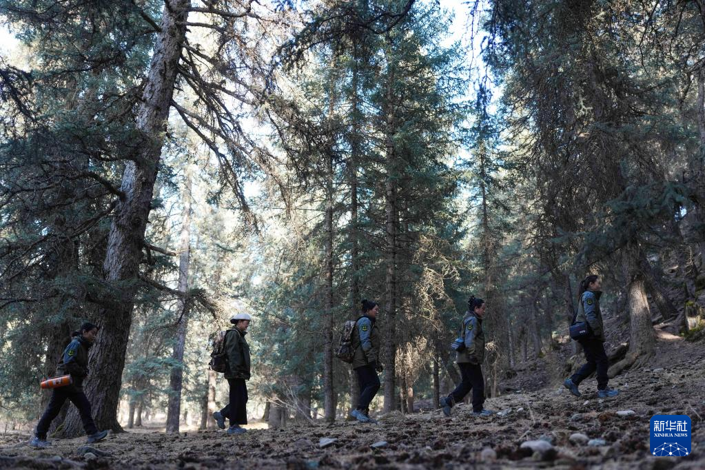 3月6日,祁連山國家公園(候選區(qū))青海片區(qū)青陽溝管護(hù)站女子管護(hù)員張麗萍在查看林木生長情況。新華社記者 張龍 攝