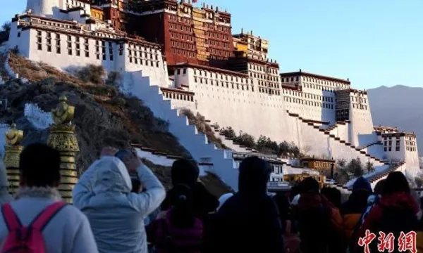 游客拉薩觀景臺迎新年第一縷陽光