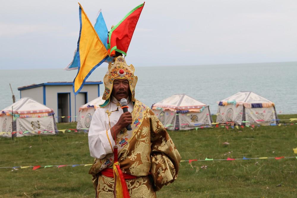 項秀才讓在青海湖邊說唱《格薩爾》史詩