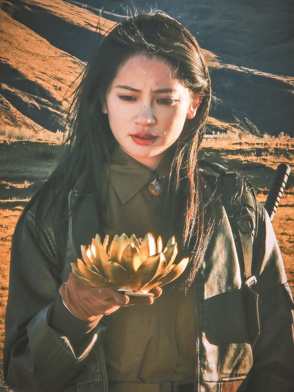 “拍攝中最難忘的是在九龍縣的取景經歷。凌晨5點起床化妝,徒步攀爬海拔5000米左右的高山,到了山頂又冷又餓,馬上又進入拍攝狀態(tài),從晨光微露拍到落日西沉。但當撞見山頂那片絕美的落日,所有疲憊都煙消云散,只覺一切付出都值得?!钡ぐ凸媚镌髑懈趧≈酗椦菅虢鸫?,對于第一次參演短劇的她來說,這是一次表演、環(huán)境、角色塑造的三重挑戰(zhàn)。