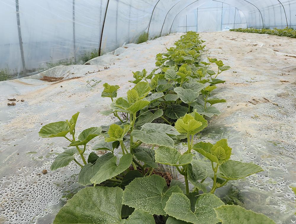 初春時(shí)節(jié),萬物復(fù)蘇。湖北荊州松滋市紙廠河鎮(zhèn)城址山村產(chǎn)業(yè)發(fā)展聯(lián)合社果蔬基地大棚內(nèi),一行行瓜苗青翠欲滴,向壟側(cè)爬出藤蔓。