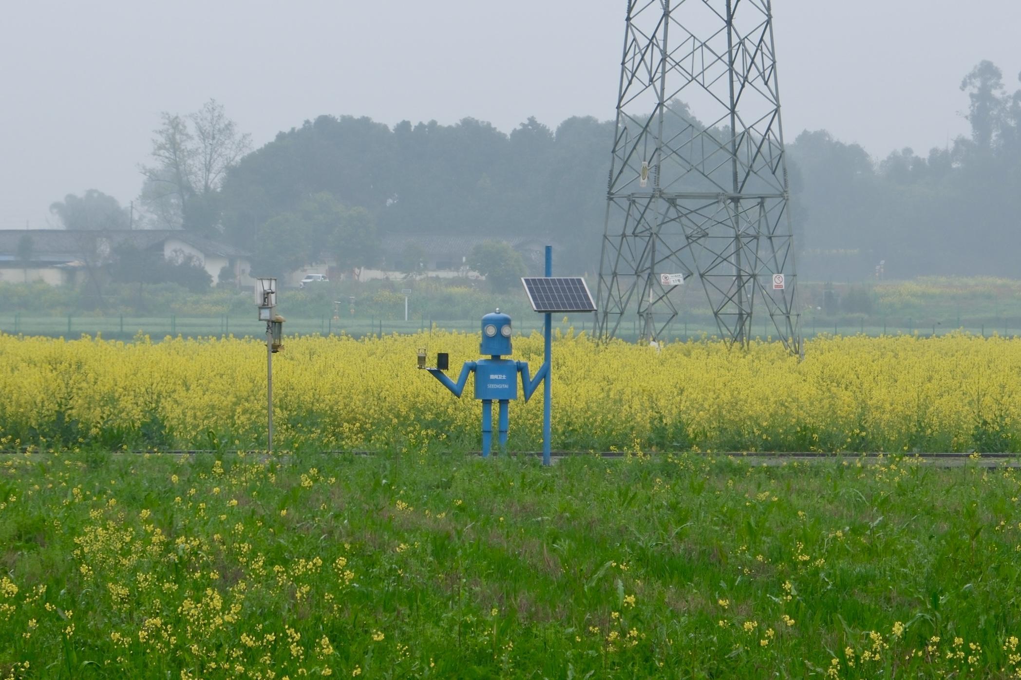 陽春三月,成都天府現(xiàn)代種業(yè)園1000余畝油菜花進入盛花期,引得游客紛至沓來。令人眼前一亮的是,油菜花田里,一個身著“藍色套裝”的機器人正在認真“站崗”,這個機器人名叫“阿崍”,集環(huán)境監(jiān)測、作物分析、病蟲害預警于一體,堪稱現(xiàn)代農(nóng)業(yè)的“田間衛(wèi)士”。
