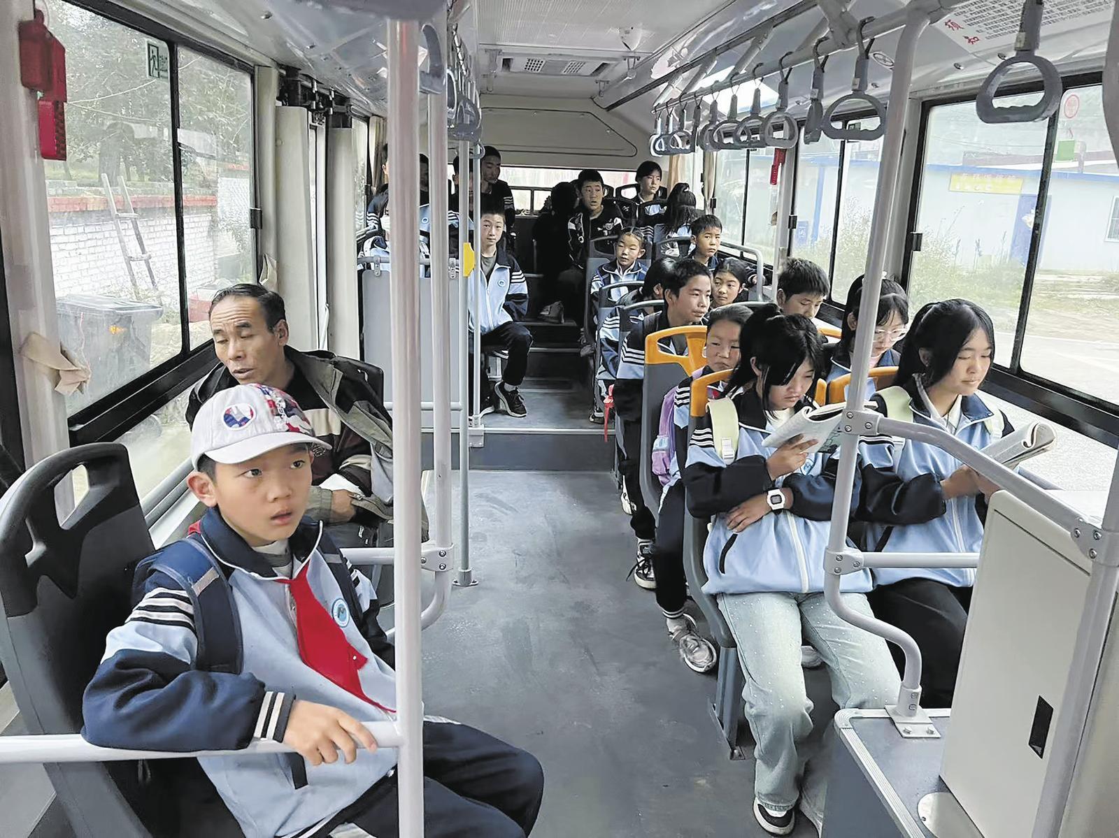 學(xué)生乘坐915路索爾加公交專線。湟中區(qū)公交公司魯沙爾車隊(duì)供圖